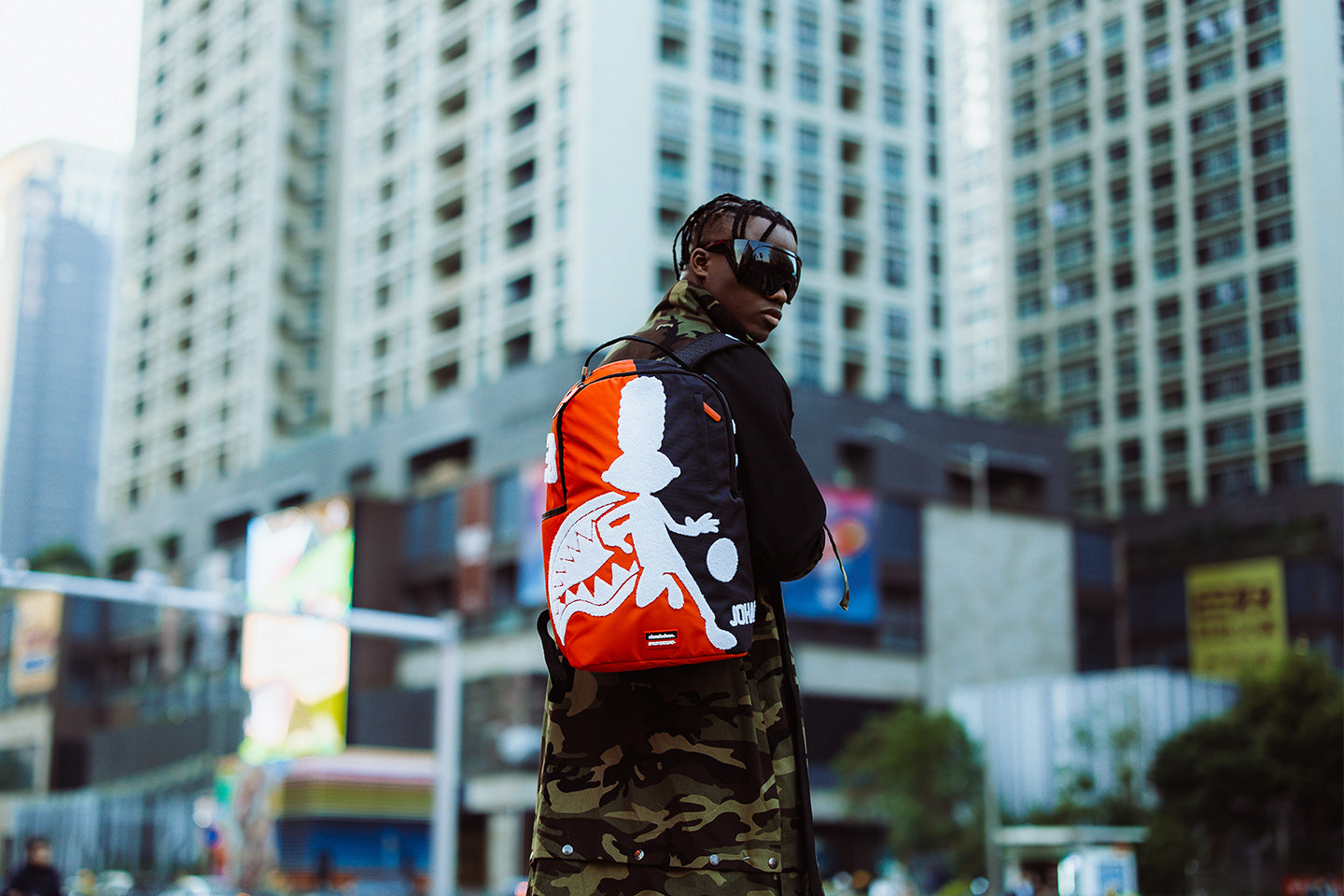 Dimensions: 18" x 6" x 11.5" • Front zipper pocket • Side pockets • Zippered Stash pocket • Separate velour sunglass compartment • Ergonomic mesh back padding • Adjustable Straps for custom sizing • Gold zippers with metal hardware • Metal "Sprayground Authentic" badge • Slide through back sleeve connects to carry-on luggage to free your hands